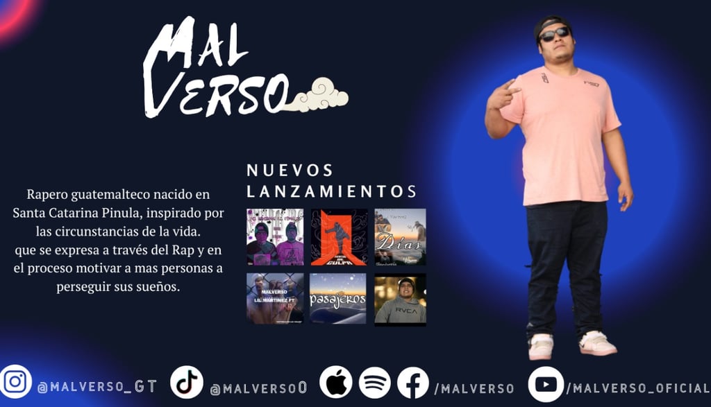 El rapero guatemalteco es un artista liricista que encuentra su inspiración en la vida y todas sus circunstancias. Su objetivo principal es motivar a más personas a perseguir sus pasiones. A través de su música, busca transmitir un mensaje de determinación y valentía, demostrando que es posible alcanzar lo que uno se propone si se trabaja duro y se persigue con pasión. Sus letras reflejan su propia experiencia y las dificultades que ha enfrentado en su camino hacia el éxito. Con cada canción, busca conectar con su audiencia y brindarles la fuerza y el coraje necesarios para superar cualquier obstáculo. Este rapero guatemalteco es una voz auténtica en el mundo de la música, y su impacto se extiende más allá del escenario, dejando una huella duradera en aquellos que lo escuchan.